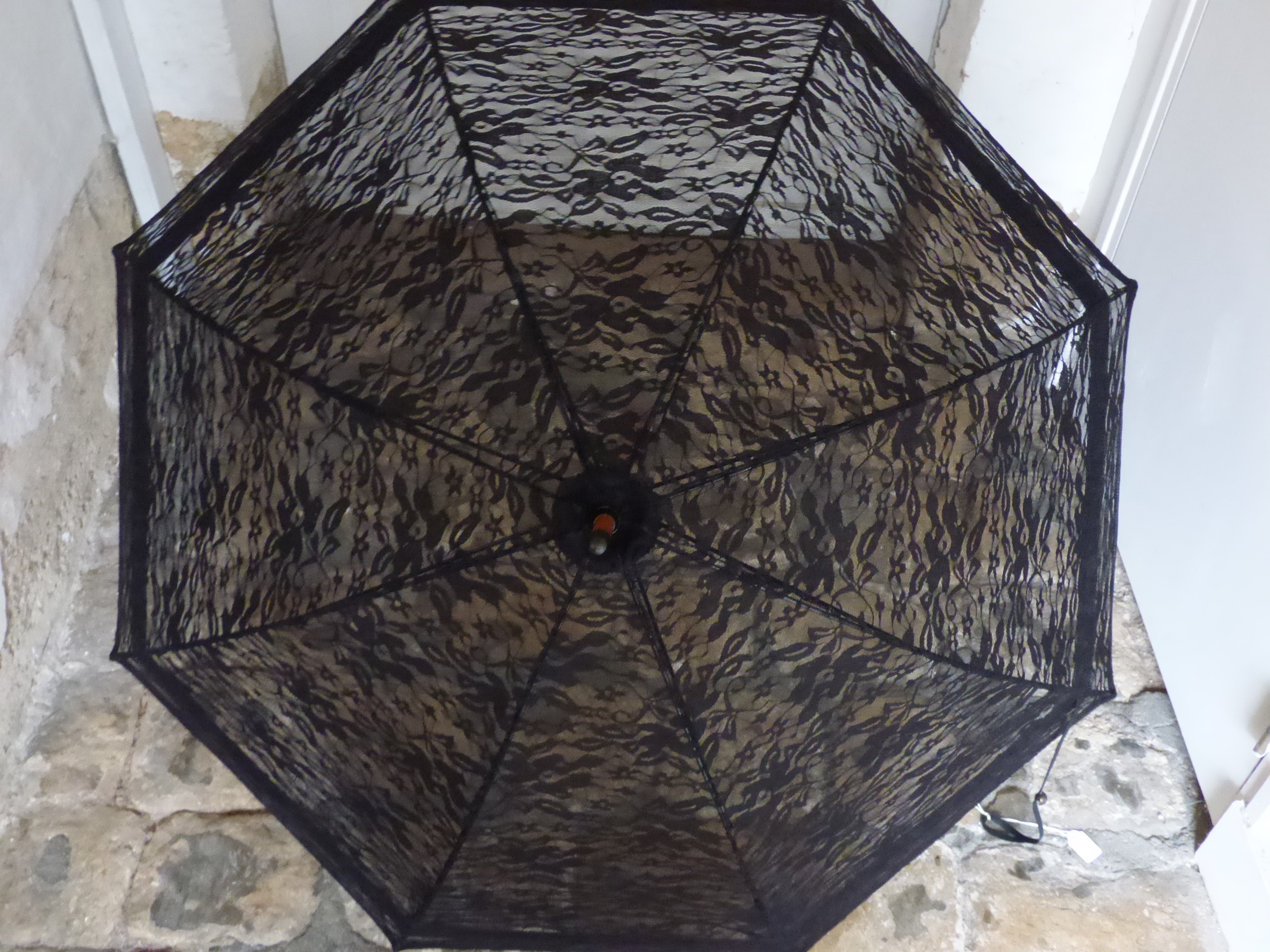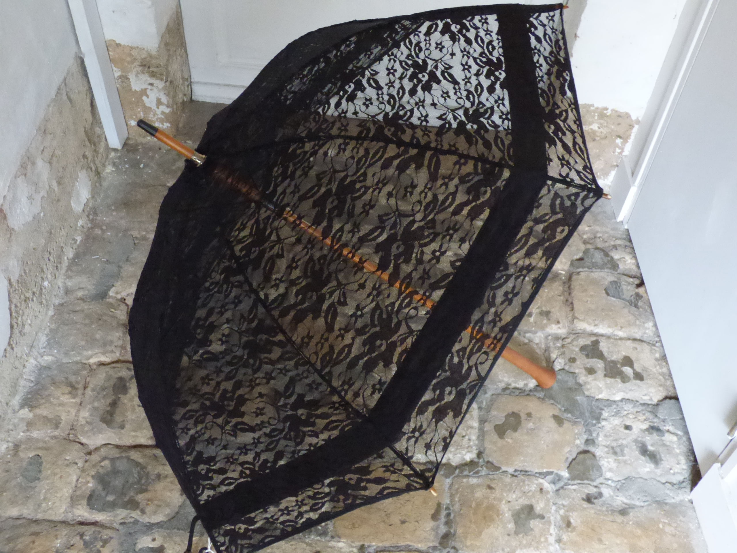 Black Lace98,00 € Manual sun umbrella Shaft : wood 8 metal canvas whales All our products are repairable, and the mechanisms are guaranteed. Pour choisir votre poignée et/ou votre broderie, cliquez sur la photo. To choose your handle and / or your embroidery, click on the photo. Personalization Your Handle * Stained Cherry Wood Natural cherry wood Corrugated natural wood Options Gift wrap Sheath shoulder strap choice (optional) no Sheath shoulder strapBlack (16,00 €)Red (16,00 €)Navy Blue (16,00 €)Green (16,00 €)Beige (16,00 €)White (16,00 €)Bordeaux (16,00 €) - Black Lace quantity + Add to basket Category: Medium Sun umbrella 39 inches Additional information Additional information Weight 0,8 kg Dimensions 95 × 13 × 6 cm Diamètre 39 inches Type Sun Umbrella Coloris Black Related products White and Orange with Lace 98,00 € Details > White with floral bias 98,00 € Details > Linen green 98,00 € Details > Violet with Lace 98,00 € Details >