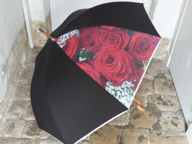 Black – Rose Bouquet picture101,00 € Manual « Large » umbrella Shaft : wood 8 metal canvas whales Tissue polyester or polycotton 35.4 inches closed, with handle Diameter : about 39 inches opened Weight : 1.036 lbs All our products are repairable, and the mechanisms are guaranteed. To choose your handle and / or your embroidery, click on the photo. Personalization Handle * Wood Wood Red Wood Green Wood Blue Red resin Black resin Green resin Blue resin Brown resin Bordeaux resin Wood Duck (40,00 €) Umbroidery Option + 8€ Embroidery on the closing tab - Uppercase (8,00 €) Embroidery on the closing tab - Italics (8,00 €) No Embroidery The color of the embroidery will match the color of the umbrella.Embroidery text (max 15 characters) : * (optional) Options Free gift wrapping Sheath with shoulder strap (optional) Black (16,00 €)Red (16,00 €)Navy Blue (16,00 €)Green (16,00 €)Beige (16,00 €)White (16,00 €)Bordeaux (16,00 €)None - Black - Rose Bouquet picture quantity + Add to basket Categories: Large 39 inches, Women's umbrella Additional information Additional information Weight 0,9 kg Dimensions 99 × 15 × 7 cm Coloris Black Diamètre 39 inches Type Large 39 inches Parapluies avec photos Roses bouquet Related products Black – Water lily picture 101,00 € Details > Green and Black – Panda Picture 101,00 € Details > Lady bug Picture – Red 101,00 € Details > Red 86,00 € Details >