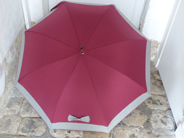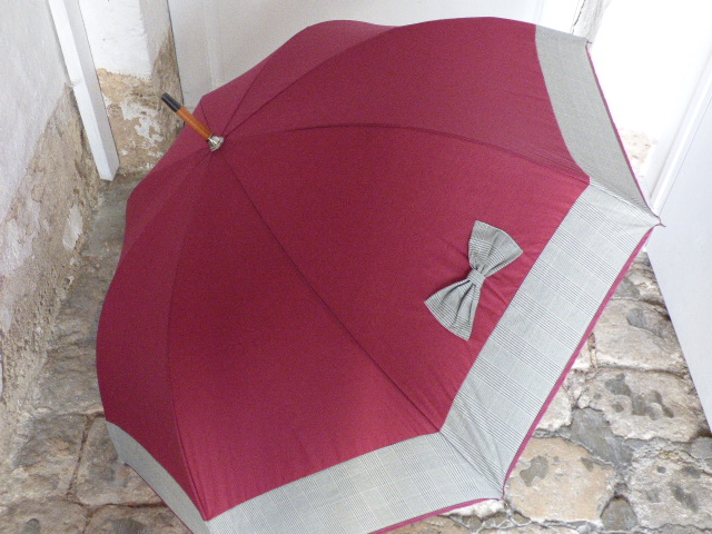 Bow Tie – Prince of Wales- Bordeaux95,00 € Manual « Large » umbrella Shaft : wood 8 metal canvas whales Tissue polyester or polycotton 35.4 inches closed, with handle Diameter : about 39 inches opened Weight : 1.036 lbs All our products are repairable, and the mechanisms are guaranteed. To choose your handle and / or your embroidery, click on the photo. Personalization Handle * Wood Wood Red Wood Green Wood Blue Red resin Black resin Green resin Blue resin Brown resin Bordeaux resin Wood Duck (40,00 €) Umbroidery Option + 8€ Embroidery on the closing tab - Uppercase (8,00 €) Embroidery on the closing tab - Italics (8,00 €) No Embroidery The color of the embroidery will match the color of the umbrella.Embroidery text (max 15 characters) : * (optional) Options Free gift wrapping Sheath with shoulder strap (optional) Black (16,00 €)Red (16,00 €)Navy Blue (16,00 €)Green (16,00 €)Beige (16,00 €)White (16,00 €)Bordeaux (16,00 €)None Bow Tie - Prince of Wales- Bordeaux quantity Add to basket Category: Large 39 inches Additional information Additional information Weight 0,900 kg Dimensions 99 × 15 × 7 cm Coloris Bordeaux, Gray Diamètre 39 inches Type Large 39 inches Noeud Bow tie Related products Lady bug Picture – Red 101,00 € Details > Black – Rose Bouquet picture 101,00 € Details > Black – Red spots 86,00 € Details > Green and Blue – Peacock picture 101,00 € Details >
