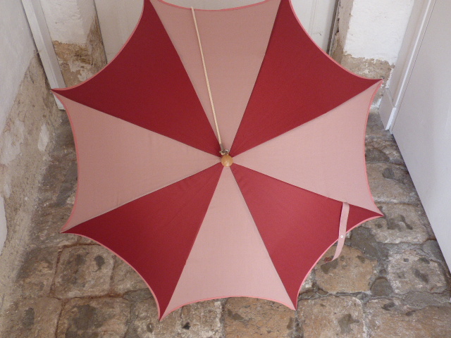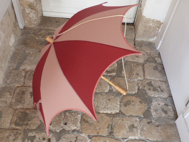 Bordeaux and Pink73,00 € Sun Umbrella « Médium with shoulder strap» Shaft : wood 8 metal canvas whales Tissue polyester or polycotton 27.55 inches closed, with handle Diameter : about 39.4 inches opened Weight : 0.77 lbs Comes with shoulder strap All our products are repairable, and the mechanisms are guaranteed. To choose your handle and / or your embroidery, click on the photo. Personalization Your Handle * Wavy handle Stained beech ball handle Natural beech ball handle Stained Wavy handle Stained un umbrella handle Options Free gift wrapping - Bordeaux and Pink quantity + Add to basket Category: Sun Umbrella - Médium with shoulder strap - 35.43 inches Additional information Additional information Weight 0,700 kg Dimensions 85 × 12 × 6 cm Type Sun Umbrella Coloris Bordeaux, Pink Diamètre 35.43 inches Related products Easter egg print 73,00 € Details > Pink – Lace print – Doubled 81,00 € Details > Pink 73,00 € Details > Fruits & Flowers – Doubled 81,00 € Details >