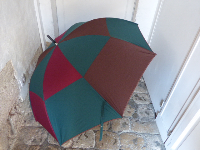 Checkerboard – Green, Brown and Bordeaux108,00 € Manual « Golf » umbrella Shaft : wood 8 metal canvas whales Tissue polyester 39.37 inches closed, with handle Diameter : about 49.2 inches opened Weight : 1.5 lbs All our products are repairable, and the mechanisms are guaranteed. To choose your handle and / or your embroidery, click on the photo. Personalization Handle * Wood Wood Red Wood Green Wood Blue Mahogany Stained Beech Beech Umbroidery Option + 8€ Embroidery on the closing tab - Uppercase (8,00 €) Embroidery on the closing tab - Italics (8,00 €) No Embroidery The color of the embroidery will match the color of the umbrella.Embroidery text (max 15 characters) : * (optional) Options Free gift wrapping Sheath with shoulder strap (optional) Black (16,00 €)Red (16,00 €)Blue (16,00 €)Green (16,00 €)Beige (16,00 €)White (16,00 €)Bordeaux (16,00 €)None - Checkerboard - Green, Brown and Bordeaux quantity + Add to basket Categories: Golf carbon 47.2 inches, Men's umbrella Additional information Additional information Weight 1,2 kg Dimensions 116 × 15 × 6 cm Coloris Bordeaux, Brown, Green Diamètre 47.2 inches Type Golf umbrella 47.2 Inches Related products Checkerboard – Red & Brown 108,00 € Details > Checkerboard – Red, Orange; Brown and Yellow 108,00 € Details > Checkerboard – Black and Multicolored 108,00 € Details > Checkerboard – Red & Grey 108,00 € Details >