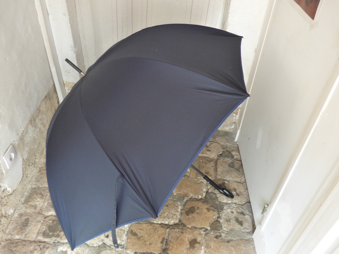 Navy Blue98,00 € Manual « Golf » umbrella Shaft : wood 8 metal canvas whales Tissue polyester 39.37 inches closed, with handle Diameter : about 49.2 inches opened Weight : 1.5 lbs All our products are repairable, and the mechanisms are guaranteed. To choose your handle and / or your embroidery, click on the photo. Personalization Handle * Wood Wood Red Wood Green Wood Blue Mahogany Stained Beech Beech Umbroidery Option + 8€ Embroidery on the closing tab - Uppercase (8,00 €) Embroidery on the closing tab - Italics (8,00 €) No Embroidery The color of the embroidery will match the color of the umbrella.Embroidery text (max 15 characters) : * (optional) Options Free gift wrapping Sheath with shoulder strap (optional) Black (16,00 €)Red (16,00 €)Blue (16,00 €)Green (16,00 €)Beige (16,00 €)White (16,00 €)Bordeaux (16,00 €)None - Navy Blue quantity + Add to basket Categories: Golf carbon 47.2 inches, Men's umbrella Additional information Additional information Weight 1,2 kg Dimensions 116 × 15 × 7 cm Coloris Blue Diamètre 47.2 inches Type Golf umbrella 47.2 Inches Related products Red 98,00 € Details > Checkerboard – Tartan & Green 108,00 € Details > Multicolored Checkerboard 108,00 € Details > Newspaper 98,00 € Details >