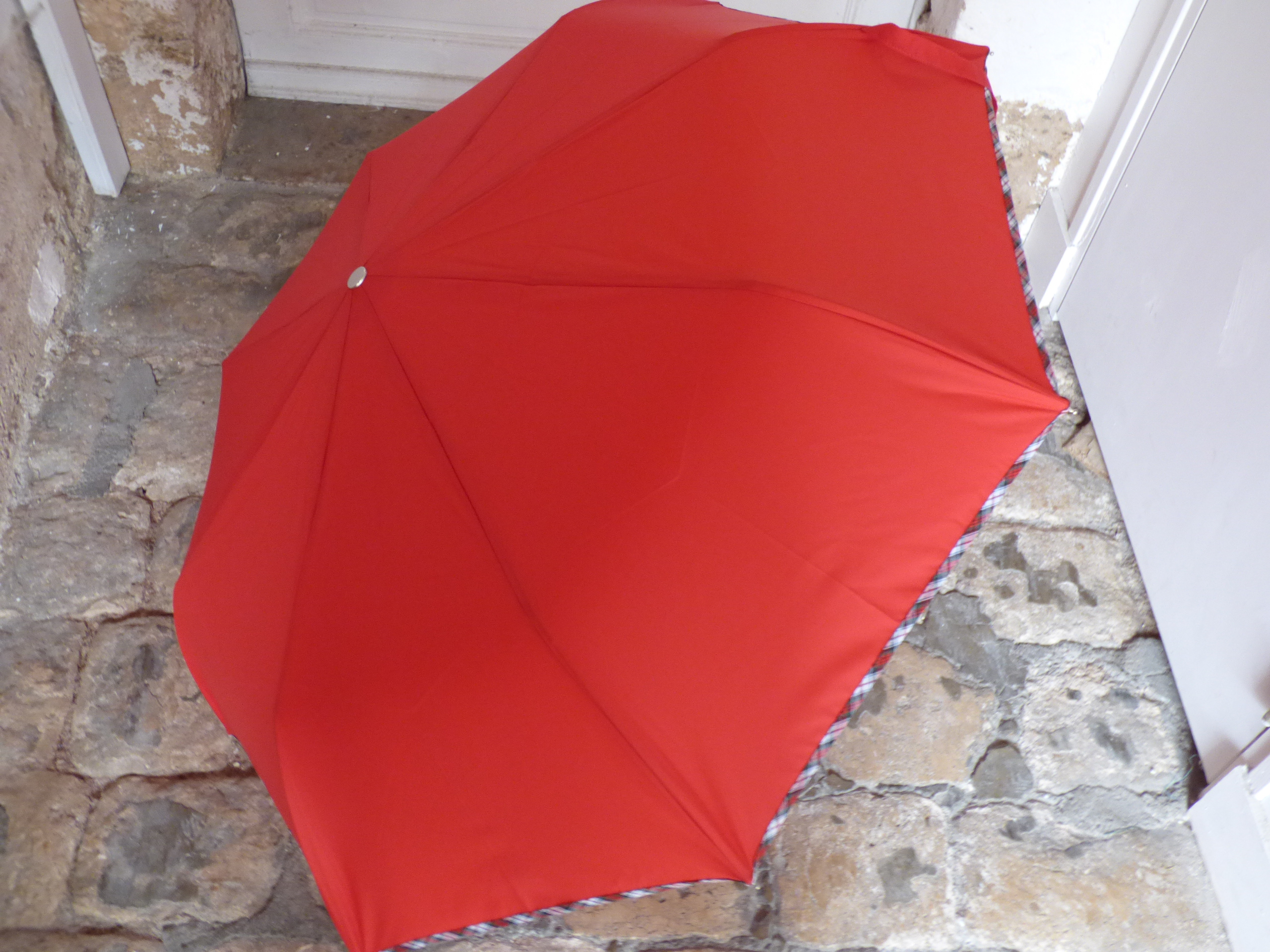 Red – Tartan bias66,00 € Manual folding umbrella Metal armature with 8 canvas whales Tissue polyester Lenght : 11 inches closed, with handle Diameter : about 37.4 inches opened Weight : 0.881 lbs Comes with cover All our products are repairable, and the mechanisms are guaranteed. To choose your handle and / or your embroidery, click on the photo. To make it easier to use, here is a video that shows you how to open and close it. Personalization Handle * Black Red Green Beech Natural Ball Exotic Wood Ball Brown Black Duck Green Duck Bordeaux Bordeaux Duck Green Blue Oak ball Oak cone Beech cone Exotic wood cone Umbroidery Option + 8€ Embroidery on the closing tab - Uppercase (8,00 €) Embroidery on the closing tab - Italics (8,00 €) No Embroidery The color of the embroidery will match the color of the umbrella. Embroidery text (max 15 characters) : * (optional) Options Free gift wrapping - Red - Tartan bias quantity + Add to basket Categories: Manual folding umbrella – Diam. 37.40 inches, Women's umbrella Additional information Additional information Weight 0,6 kg Dimensions 40 × 9 × 6 cm Coloris Red Type Manual folding Diamètre 37.4 inches Related products Grey 66,00 € Details > Picture Flowers bouquet – Pink – Purple 81,00 € Details > Purple 66,00 € Details > Picture Sunflower – Yellow and Brown 81,00 € Details >