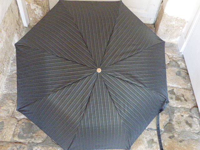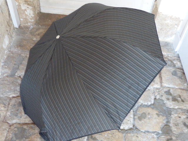 Striped Gray76,00 € Automatic folding umbrella manual closing Metal armature with 8 canvas whales Tissue polyester 15 inches closed, with handle Diameter : about 36 inches opened Weight : 0.881 lbs Comes with cover All our products are repairable, and the mechanisms are guaranteed. To choose your handle and / or your embroidery, click on the photo. To make it easier to use, here is a video that shows you how to open and close it. Personalization Handle * Black Red Green Beech Natural Ball Exotic Wood Ball Brown Black Duck Green Duck Bordeaux Bordeaux Duck Curved Wood Curved Leather (18,00 €) Oak ball Green Blue Oak cone Beech cone Exotic wood cone Umbroidery Option + 8€ Embroidery on the closing tab - Uppercase (8,00 €) Embroidery on the closing tab - Italics (8,00 €) No Embroidery The color of the embroidery will match the color of the umbrella.Embroidery text (max 15 characters) : * (optional) Options Free gift wrapping - Striped Gray quantity + Add to basket Categories: Automatic folding umbrella - Diam. 36 inches, Men's umbrella Additional information Additional information Weight 0,55 kg Dimensions 48 × 13 × 6 cm Coloris Gray Diamètre 36 inches Type Automatic folding Related products Red and Newspaper 83,00 € Details > Picture Water Drops – Blue 91,00 € Details > Bow tie – Blue and Green – Flower Bias 83,00 € Details > Green 76,00 € Details >