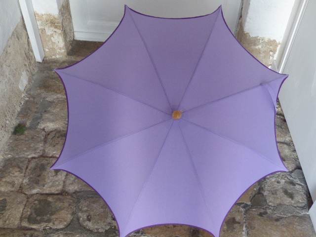 Violet73,00 € Sun Umbrella « Médium with shoulder strap» Shaft : wood 8 metal canvas whales Tissue polyester or polycotton 27.55 inches closed, with handle Diameter : about 39.4 inches opened Weight : 0.77 lbs Comes with shoulder strap All our products are repairable, and the mechanisms are guaranteed. To choose your handle and / or your embroidery, click on the photo. Personalization Your Handle * Wavy handle Stained beech ball handle Natural beech ball handle Stained Wavy handle Stained un umbrella handle Options Free gift wrapping - Violet quantity + Add to basket Category: Sun Umbrella - Médium with shoulder strap - 35.43 inches Additional information Additional information Weight 0,700 kg Dimensions 85 × 12 × 6 cm Type Sun Umbrella Coloris Purple Diamètre 35.43 inches Related products Bordeaux and Pink 73,00 € Details > Beige – Floral Print 73,00 € Details > White – Little Spots – Doubled 81,00 € Details > Yellow – Lace print – Doubled 81,00 € Details >