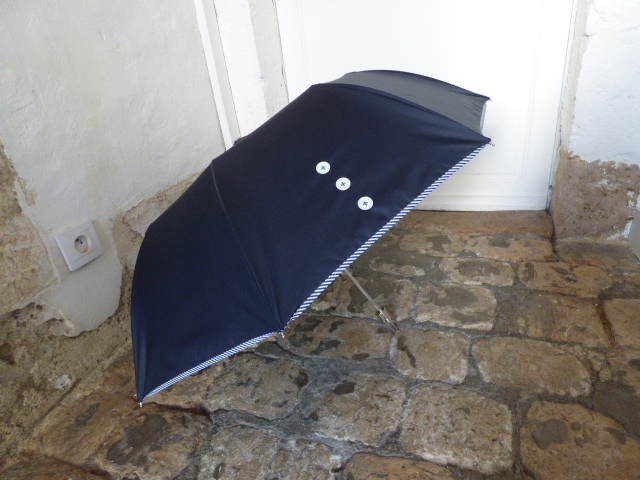 Bleu Marine – Boutons Blancs83,00 € Parapluie mini pliant à ouverture automatique Armature 8 baleines en métal Tissus polyester Longueur plié avec poignée 38 cm Diamètre ouvert environ 92 cm Poids 450 gr Fourni avec housse coordonnée. Tous nos produits sont réparables, et les mécanismes sont garantis. Pour choisir votre poignée et/ou votre broderie, cliquez sur la photo. Pour faciliter son utilisation voici une vidéo qui vous montre comment l'ouvrir et le fermer Personnalisation Votre poignée * Boule résine marbrée gris-noir Boule résine rouge Boule résine vert olive Boule hêtre naturel Boule bois exotique Poignée résine Marron Canard Noir Canard Vert Boule résine Bordeaux Courbe Cuir (18,00 €) Canard Bordeaux Courbe bois Boule résine bleue Boule résine verte Boule chêne Cône hêtre Cône chêne Cône exotique Broderie (Option(s) + 8€) Broderie sur la patte - Italique (8,00 €) Aucune broderie Broderie sur la patte - Majuscules (8,00 €) La couleur de la broderie sera assortie à la couleur du parapluie. Texte de la broderie (15 caractères max) * (facultatif) Options Emballage cadeau offert - quantité de Bleu Marine - Boutons Blancs + Ajouter au panier Catégories : Parapluie femme, Parapluie pliant automatique - Diam. 92 cm Informations complémentaires Informations complémentaires Poids 0,55 kg Dimensions 48 × 13 × 6 cm Coloris Bleu Diamètre 92 cm Type Pliant automatique Produits similaires Image les Amoureux – Noir Pois Blancs – Fuchsia 83,00 € Détails > Bordeaux 76,00 € Détails > Nœud – Noir Pois Blancs – Vert Anis 83,00 € Détails > Nœud – Noir Pois Blancs – Rouge Brique 83,00 € Détails >
