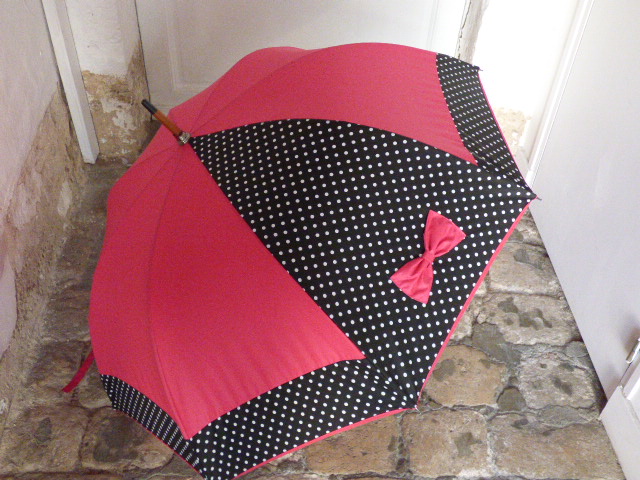 Nœud – Fuchsia – Noir Pois Blancs98,00 € Parapluie «long» à ouverture manuelle Mât en bois Armature 8 baleines en métal Tissus 100 % polyester ou mélange coton/polyester selon modèles Longueur plié avec poignée 90 cm Diamètre ouvert environ 100 cm Poids 500 gr Tous nos produits sont réparables, et les mécanismes sont garantis. Pour choisir votre poignée et/ou votre broderie, cliquez sur la photo. Personnalisation Votre poignée * Courbe bois Courbe bois Bordeaux Courbe bois Verte Courbe bois Bleue Courbe résine Rouge Courbe résine Bordeaux Courbe résine Noire Courbe résine Verte Courbe résine Bleu Canard en Bois Sculpté (40,00 €) Broderie (Option(s) + 8€) Broderie sur la patte de fermeture - Majuscule (8,00 €) Broderie sur la patte - Italique (8,00 €) Aucune broderie La couleur de la broderie sera assortie à la couleur du parapluie. Texte de la broderie (15 caractères max) * (facultatif) Options Emballage cadeau offert Choix de la housse (facultatif) Noire (16,00 €)Rouge (16,00 €)Bleu Marine (16,00 €)Vert Anglais (16,00 €)Beige (16,00 €)Blanc (16,00 €)Bordeaux (16,00 €)Pas de housse quantité de Nœud - Fuchsia - Noir Pois Blancs Ajouter au panier Catégories : Parapluie femme, Parapluie long 100 cm Informations complémentaires Informations complémentaires Poids 0,900 kg Dimensions 99 × 15 × 7 cm Coloris Noir, Rose Diamètre 100 cm Type Parapluie long 100 cm Noeud Noeud Produits similaires Photo de forêt – Marron et vert 101,00 € Détails > Noir et Bleu 86,00 € Détails > Noir – Photo – Nénuphar 101,00 € Détails > Gris 86,00 € Détails >