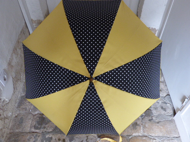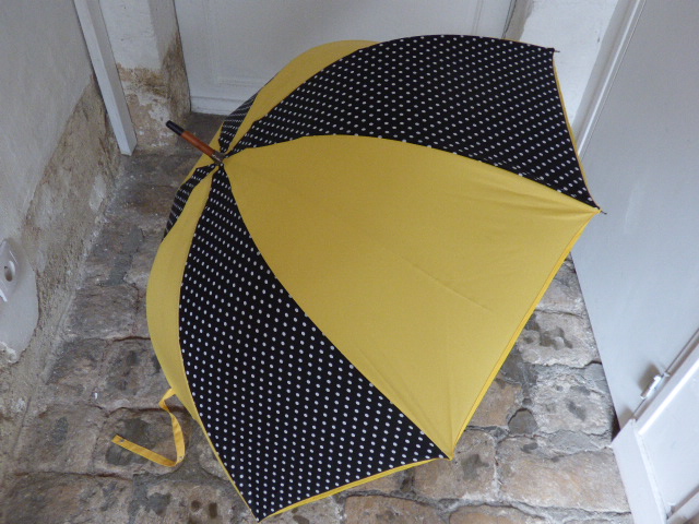 Noir Pois Blancs – Jaune86,00 € Parapluie «long» à ouverture manuelle Mât en bois Armature 8 baleines en métal Tissus 100 % polyester ou mélange coton/polyester selon modèles Longueur plié avec poignée 90 cm Diamètre ouvert environ 100 cm Poids 500 gr Tous nos produits sont réparables, et les mécanismes sont garantis. Pour choisir votre poignée et/ou votre broderie, cliquez sur la photo. Personnalisation Votre poignée * Courbe bois Courbe bois Bordeaux Courbe bois Verte Courbe bois Bleue Courbe résine Rouge Courbe résine Bordeaux Courbe résine Noire Courbe résine Verte Courbe résine Bleu Canard en Bois Sculpté (40,00 €) Broderie (Option(s) + 8€) Broderie sur la patte de fermeture - Majuscule (8,00 €) Broderie sur la patte - Italique (8,00 €) Aucune broderie La couleur de la broderie sera assortie à la couleur du parapluie. Texte de la broderie (15 caractères max) * (facultatif) Options Emballage cadeau offert Choix de la housse (facultatif) Noire (16,00 €)Rouge (16,00 €)Bleu Marine (16,00 €)Vert Anglais (16,00 €)Beige (16,00 €)Blanc (16,00 €)Bordeaux (16,00 €)Pas de housse - quantité de Noir Pois Blancs - Jaune + Ajouter au panier Catégories : Parapluie femme, Parapluie long 100 cm Étiquette : noir Informations complémentaires Informations complémentaires Poids 0,900 kg Dimensions 99 × 15 × 7 cm Coloris Jaune, Noir Diamètre 100 cm Type Parapluie long 100 cm Produits similaires Photo Paon – Vert et Bleu 101,00 € Détails > Noir – Pois Blancs Biais rouge 86,00 € Détails > Photo de forêt – Marron et vert 101,00 € Détails > Photo Papillon – Noir – Orange et Vert 101,00 € Détails >