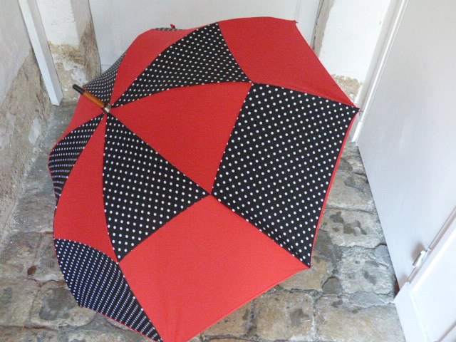 Noir Pois Blancs – Rouge98,00 € Parapluie «long» à ouverture manuelle Mât en bois Armature 8 baleines en métal Tissus 100 % polyester ou mélange coton/polyester selon modèles Longueur plié avec poignée 90 cm Diamètre ouvert environ 100 cm Poids 500 gr Tous nos produits sont réparables, et les mécanismes sont garantis. Pour choisir votre poignée et/ou votre broderie, cliquez sur la photo. Personnalisation Votre poignée * Courbe bois Courbe bois Bordeaux Courbe bois Verte Courbe bois Bleue Courbe résine Rouge Courbe résine Bordeaux Courbe résine Noire Courbe résine Verte Courbe résine Bleu Canard en Bois Sculpté (40,00 €) Broderie (Option(s) + 8€) Broderie sur la patte de fermeture - Majuscule (8,00 €) Broderie sur la patte - Italique (8,00 €) Aucune broderie La couleur de la broderie sera assortie à la couleur du parapluie. Texte de la broderie (15 caractères max) * (facultatif) Options Emballage cadeau offert Choix de la housse (facultatif) Noire (16,00 €)Rouge (16,00 €)Bleu Marine (16,00 €)Vert Anglais (16,00 €)Beige (16,00 €)Blanc (16,00 €)Bordeaux (16,00 €)Pas de housse quantité de Noir Pois Blancs - Rouge Ajouter au panier Catégories : Parapluie canne long 100 cm, Parapluie femme Informations complémentaires Informations complémentaires Poids 0,900 kg Dimensions 99 × 15 × 7 cm Coloris Noir, Rouge Diamètre 100 cm Type Parapluie long 100 cm Produits similaires Rouge 86,00 € Détails > Photo Papillon – Noir – Orange et Vert 101,00 € Détails > Bordeaux 86,00 € Détails > Noir – Rouge Hermès 86,00 € Détails >