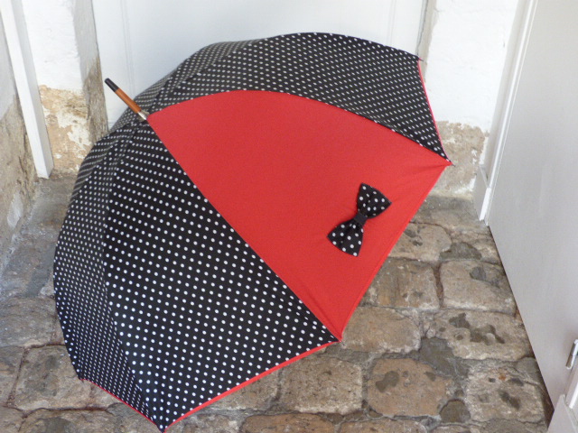 Nœud – Noir Pois Blancs – Rouge98,00 € Parapluie «long» à ouverture manuelle Mât en bois Armature 8 baleines en métal Tissus 100 % polyester ou mélange coton/polyester selon modèles Longueur plié avec poignée 90 cm Diamètre ouvert environ 100 cm Poids 500 gr Tous nos produits sont réparables, et les mécanismes sont garantis. Pour choisir votre poignée et/ou votre broderie, cliquez sur la photo. Personnalisation Votre poignée * Courbe bois Courbe bois Bordeaux Courbe bois Verte Courbe bois Bleue Courbe résine Rouge Courbe résine Bordeaux Courbe résine Noire Courbe résine Verte Courbe résine Bleu Canard en Bois Sculpté (40,00 €) Broderie (Option(s) + 8€) Broderie sur la patte de fermeture - Majuscule (8,00 €) Broderie sur la patte - Italique (8,00 €) Aucune broderie La couleur de la broderie sera assortie à la couleur du parapluie. Texte de la broderie (15 caractères max) * (facultatif) Options Emballage cadeau offert Choix de la housse (facultatif) Noire (16,00 €)Rouge (16,00 €)Bleu Marine (16,00 €)Vert Anglais (16,00 €)Beige (16,00 €)Blanc (16,00 €)Bordeaux (16,00 €)Pas de housse quantité de Nœud - Noir Pois Blancs - Rouge Ajouter au panier Catégories : Parapluie femme, Parapluie long 100 cm Informations complémentaires Informations complémentaires Poids 0,900 kg Dimensions 99 × 15 × 7 cm Coloris Noir, Rouge Diamètre 100 cm Type Parapluie long 100 cm Noeud Noeud Produits similaires Photo Coquelicots – Noir pois Blancs 101,00 € Détails > Noir et Bleu 86,00 € Détails > Rouge 86,00 € Détails > Photo Coccinelle – Rouge 101,00 € Détails >
