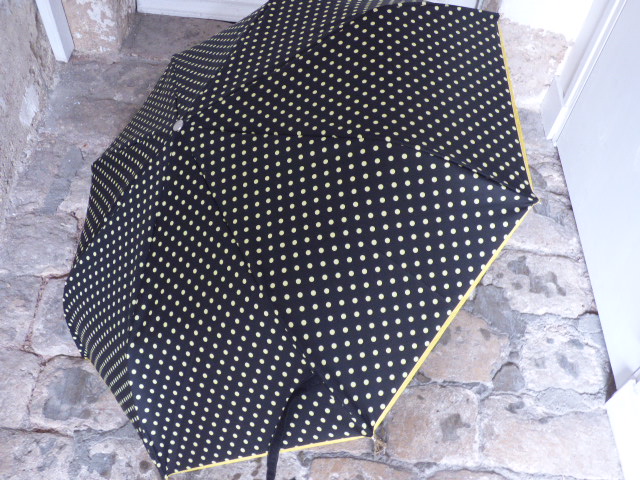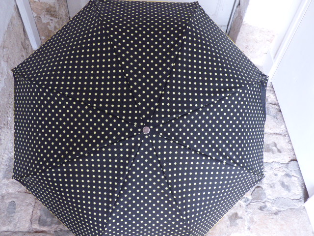 Noir Pois Jaunes66,00 € Parapluie mini pliant à ouverture manuelle Armature 8 baleines en métal Tissus polyester Longueur plié avec poignée 28 cm Diamètre ouvert environ 95 cm Poids 400 gr Fourni avec housse coordonnée. Tous nos produits sont réparables, et les mécanismes sont garantis. Pour choisir votre poignée et/ou votre broderie, cliquez sur la photo. Pour faciliter son utilisation voici une vidéo qui vous montre comment l'ouvrir et le fermer Personnalisation Votre poignée * Boule résine marbrée gris-noir Boule résine rouge Boule résine vert olive Boule Hêtre Naturel Boule bois exotique Poignée résine Marron Canard Noir Canard Vert Boule résine Bordeaux Canard Bordeaux Boule résine bleue Boule résine verte Boule chêne Cône hêtre Cône chêne Cône exotique Broderie (Option(s) + 8€) Broderie sur la patte de fermeture - Majuscule (8,00 €) Broderie sur la patte - Italique (8,00 €) Aucune broderie La couleur de la broderie sera assortie à la couleur du parapluie. Texte de la broderie (15 caractères max) * (facultatif) Options Emballage cadeau offert - quantité de Noir Pois Jaunes + Ajouter au panier Catégories : Mini Parapluie pliant manuel - Diam. 95 cm, Parapluie femme Informations complémentaires Informations complémentaires Poids 0,6 kg Dimensions 40 × 9 × 6 cm Coloris Noir Type Pliant manuel Diamètre 95 cm Produits similaires Nœud – Orange – Pointe noire Pois blancs 73,00 € Détails > Prune 66,00 € Détails > Ecossais Rouge et Vert 66,00 € Détails > Marron 66,00 € Détails >