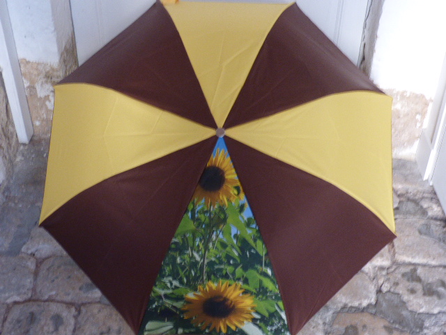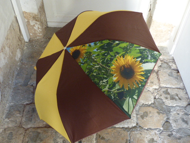 Photo Tournesol – Jaune et Marron91,00 € Parapluie mini pliant à ouverture automatique Armature 8 baleines en métal Tissus polyester Longueur plié avec poignée 38 cm Diamètre ouvert environ 92 cm Poids 450 gr Fourni avec housse coordonnée. Tous nos produits sont réparables, et les mécanismes sont garantis. Pour choisir votre poignée et/ou votre broderie, cliquez sur la photo. Pour faciliter son utilisation voici une vidéo qui vous montre comment l'ouvrir et le fermer Personnalisation Votre poignée * Boule résine marbrée gris-noir Boule résine rouge Boule résine vert olive Boule hêtre naturel Boule bois exotique Poignée résine Marron Canard Noir Canard Vert Boule résine Bordeaux Courbe Cuir (18,00 €) Canard Bordeaux Courbe bois Boule résine bleue Boule résine verte Boule chêne Cône hêtre Cône chêne Cône exotique Broderie (Option(s) + 8€) Broderie sur la patte - Italique (8,00 €) Aucune broderie Broderie sur la patte - Majuscules (8,00 €) La couleur de la broderie sera assortie à la couleur du parapluie. Texte de la broderie (15 caractères max) * (facultatif) Options Emballage cadeau offert - quantité de Photo Tournesol - Jaune et Marron + Ajouter au panier Catégorie : Parapluie pliant automatique - Diam. 92 cm Informations complémentaires Informations complémentaires Poids 0,6 kg Dimensions 40 × 9 × 6 cm Coloris Jaune, Marron Type Pliant automatique Diamètre 92 cm Parapluies avec photos Tournesol Produits similaires Photo Coquelicots – Rouge 91,00 € Détails > Nœud – Noir Pois Blancs – Rouge Brique 83,00 € Détails > Photo Orchidée – Noir et Prune 91,00 € Détails > Image en Trompe l’œil – Noir et Gris 91,00 € Détails >