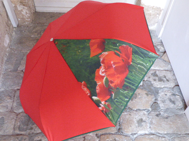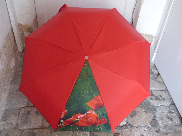 Photo Coquelicots – Rouge81,00 € Parapluie mini pliant à ouverture manuelle Armature 8 baleines en métal Tissus polyester Longueur plié avec poignée 28 cm Diamètre ouvert environ 95 cm Poids 400 gr Fourni avec housse coordonnée. Tous nos produits sont réparables, et les mécanismes sont garantis. Pour choisir votre poignée et/ou votre broderie, cliquez sur la photo. Pour faciliter son utilisation voici une vidéo qui vous montre comment l'ouvrir et le fermer Personnalisation Votre poignée * Boule résine marbrée gris-noir Boule résine rouge Boule résine vert olive Boule Hêtre Naturel Boule bois exotique Poignée résine Marron Canard Noir Canard Vert Boule résine Bordeaux Canard Bordeaux Boule résine bleue Boule résine verte Boule chêne Cône hêtre Cône chêne Cône exotique Broderie (Option(s) + 8€) Broderie sur la patte de fermeture - Majuscule (8,00 €) Broderie sur la patte - Italique (8,00 €) Aucune broderie La couleur de la broderie sera assortie à la couleur du parapluie. Texte de la broderie (15 caractères max) * (facultatif) Options Emballage cadeau offert - quantité de Photo Coquelicots - Rouge + Ajouter au panier Catégories : Mini Parapluie pliant manuel - Diam. 95 cm, Parapluie femme Informations complémentaires Informations complémentaires Poids 0,55 kg Dimensions 48 × 10 × 6 cm Coloris Rouge Type Pliant manuel Diamètre 95 cm Parapluies avec photos Coquelicots Produits similaires Photo coccinelle – Vert – Bordeaux 81,00 € Détails > Noir Pois Rouges 66,00 € Détails > Ecossais Rouge et Vert 66,00 € Détails > Nœud – Orange – Pointe noire Pois blancs 73,00 € Détails >
