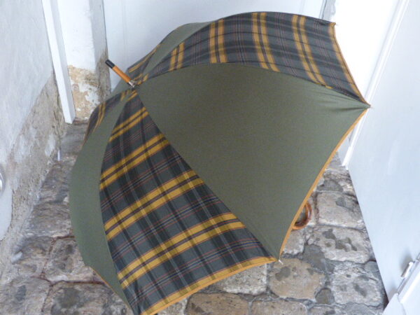 Vert – Ecossais vert et jaune91,00 € Parapluie « extra large » à ouverture manuelle Mât en bois Armature 8 baleines en métal Tissus 100 % polyester ou mélange coton/polyester selon modèles Longueur plié avec poignée 95 cm Diamètre ouvert environ 110 cm Poids 550 gr Tous nos produits sont réparables, et les mécanismes sont garantis. Pour choisir votre poignée et/ou votre broderie, cliquez sur la photo. Personnalisation Votre poignée * Courbe bois noire Courbe bois Bordeaux Courbe bois Verte Courbe bois Bleue Poignée bois foncé Bois clair Broderie (Option(s) + 8€) Broderie sur la patte de fermeture - Majuscule (8,00 €) Broderie sur la patte - Italique (8,00 €) Aucune broderie La couleur de la broderie sera assortie à la couleur du parapluie. Texte de la broderie (15 caractères max) * (facultatif) Options Emballage cadeau offert Choix de la housse (facultatif) Noire (16,00 €)Rouge (16,00 €)Bleu Marine (16,00 €)Vert Anglais (16,00 €)Beige (16,00 €)Blanc (16,00 €)Bordeaux (16,00 €)Pas de housse - quantité de Vert - Ecossais vert et jaune + Ajouter au panier Catégories : Parapluie canne extra large - Diam. 110 cm, Parapluie homme Informations complémentaires Informations complémentaires Poids 0,9 kg Dimensions 99 × 16 × 10 cm Coloris Vert Diamètre 110 cm Type Parapluie extra large 110 CM Produits similaires Multicolore bande Noire 103,00 € Détails > Noir – Mélange Orange, rouge et jaune 103,00 € Détails > Marron 91,00 € Détails > Marron, Rouge, Orange, Jaune 103,00 € Détails >